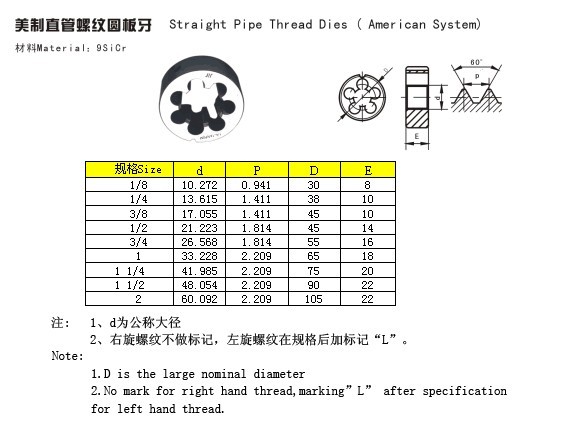 美制直管螺紋圓板牙